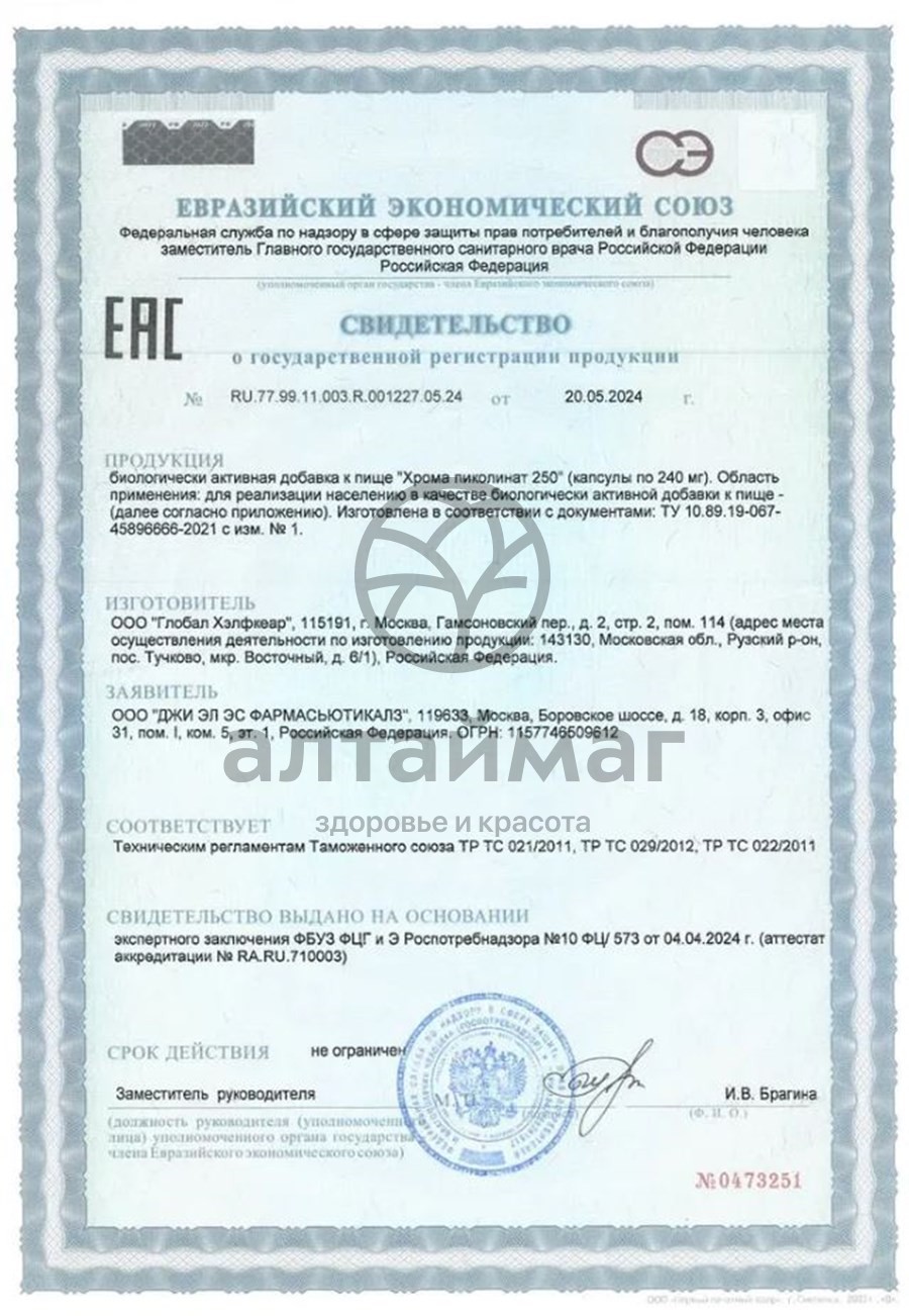 Есть вопросы по товару "Хрома пиколинат GLS 60 капсул"?