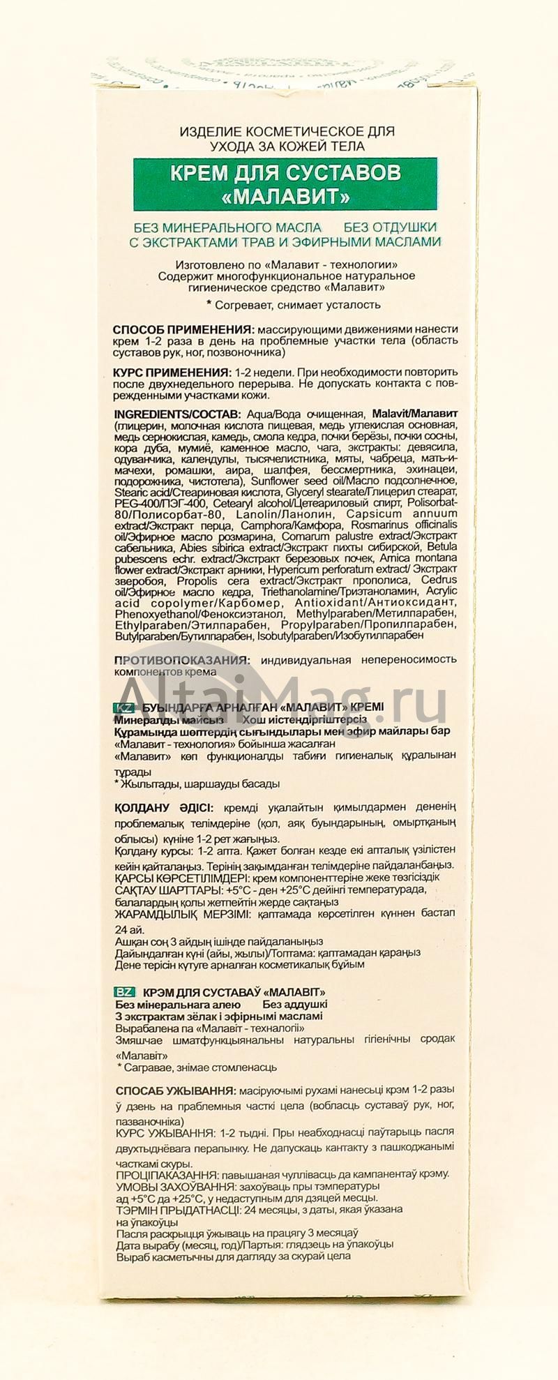 - Купите Крем для суставов Малавит 100 мл в Череповце по доступной цене 370 ₽ с доставкой на дом или заберите Ваш заказ в Череповце из ближайшего пункта выдачи, сделав заказ на AltaiMag.ru.