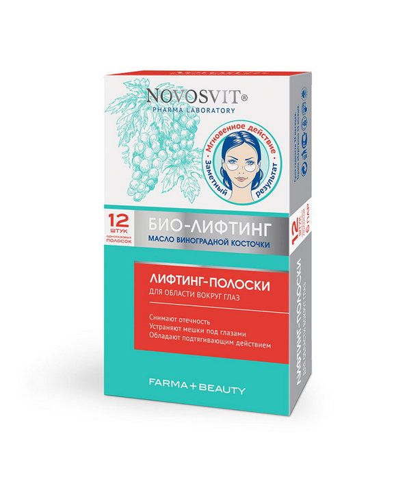 Лифтинг-полоски содержат витамины А, Е, масло виноградных косточек, гликозаминогликаны, винную кислоту. Снимают отечность, устраняют синяки и «мешки» под глазами, обладают подтягивающим действием, интенсивно увлажняют кожу.
