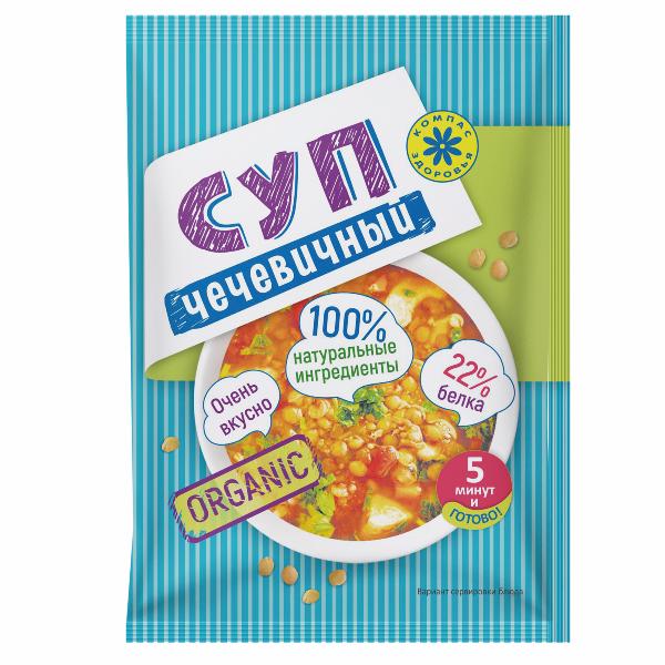 Суп чечевичный, 100% натуральные ингредиенты, 22% белка. Приготовление занимает 5 минут. Не содержит глютен.